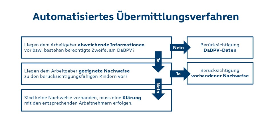 Kinder, die nicht im DaBPV gemeldet werden können, insbesondere weil sie steuerrechtlich nicht relevant sind, wie z. B. bei Stief- und Pflegekindern möglich, können Arbeitnehmer selbst gegenüber ihrem Arbeitgeber nachweisen.