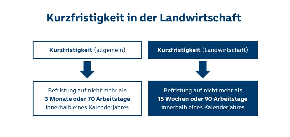 In der Gesetzesbegründung wird hierzu ausgeführt: "Die Ergänzung der Definition der kurzfristigen Beschäftigung in § 8 Absatz 1 Nummer 2 um einen neuen Halbsatz hat zum Ziel, den Selbstversorgungsgrad mit landwirtschaftlichen Produkten zu erhöhen ... Dafür werden die zeitlichen Grenzen der kurzfristigen Beschäftigung mit Rücksicht auf den besonderen Bedarf der Landwirtschaft an Saisonbeschäftigten für landwirtschaftliche Betriebe auf 90 Arbeitstage oder 15 Wochen (die bei einer 6-Tage-Woche 90 Arbeitstagen entsprechen) verlängert. Für die Bestimmung der landwirtschaftlichen Betriebe in diesem Sinne ist die Klassifikation der Wirtschaftszweige des Statistischen Bundesamtes (Ausgabe 2025), Abschnitt A, Abteilung 01 maßgeblich"; diese ist abrufbar unter: www.destatis.de